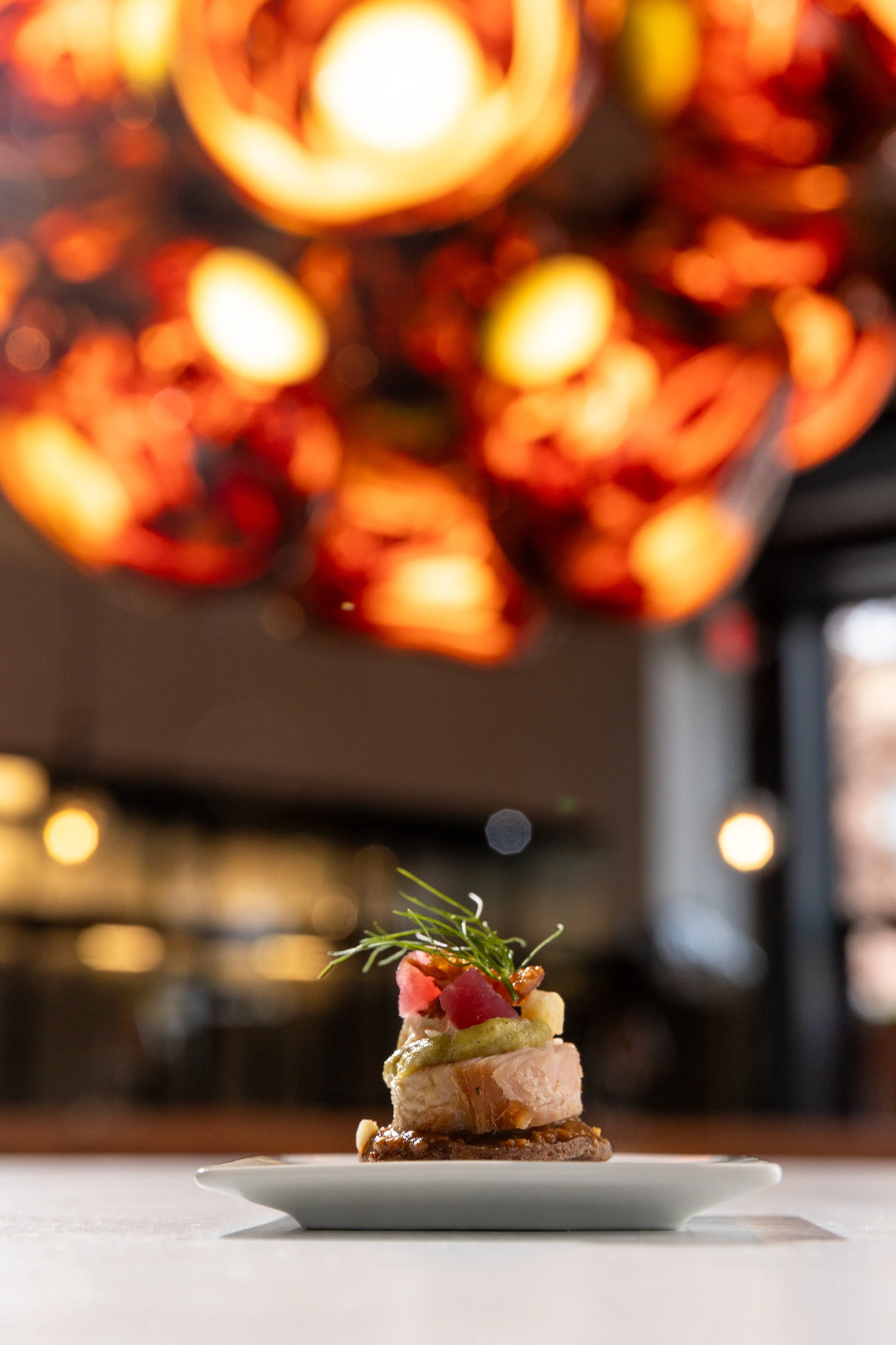 As your experience unfolds, each course is presented by the person who crafted it for you. Your beverage pairings are thoughtfully designed to complement the flavors on your plate. Your meal ends back in the lounge, with dessert fashioned by our Pastry Chef, and an after-dinner drink. We send you on your way with a parting gift of house-made bean to bar chocolate.